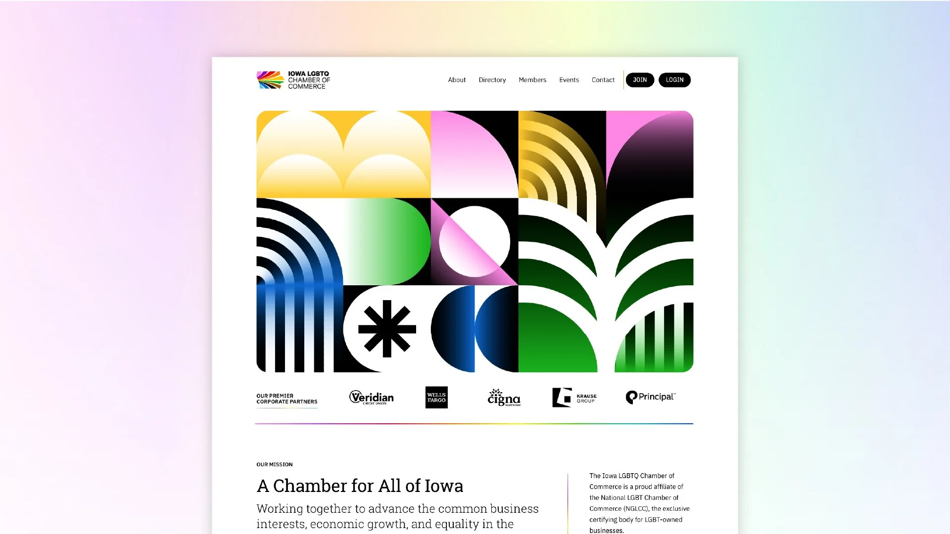 Measure, Inc. was enlisted to redesign the Iowa LGBTQ Chamber of Commerce Website. I was responsible for developing three hero images for the website.