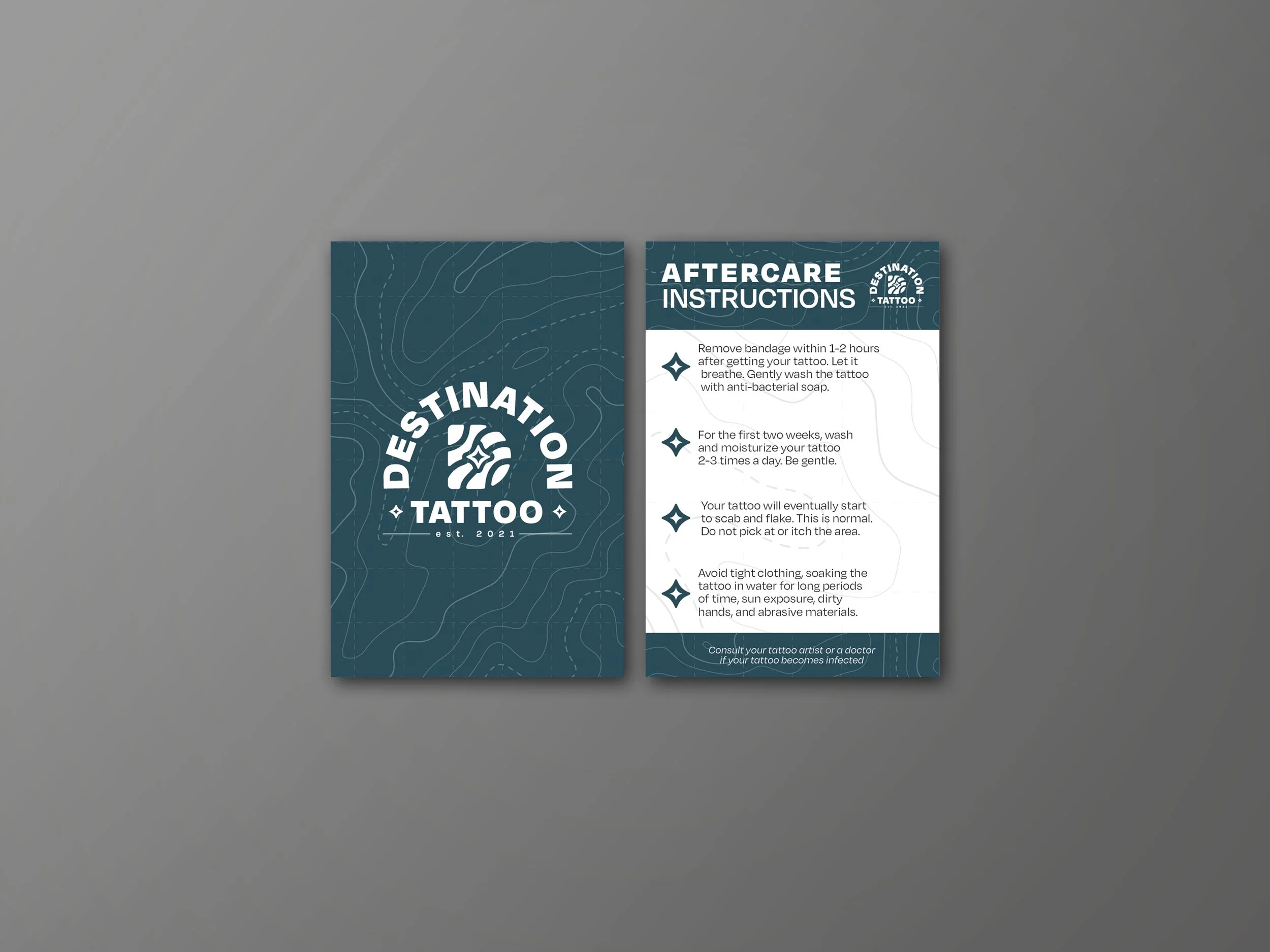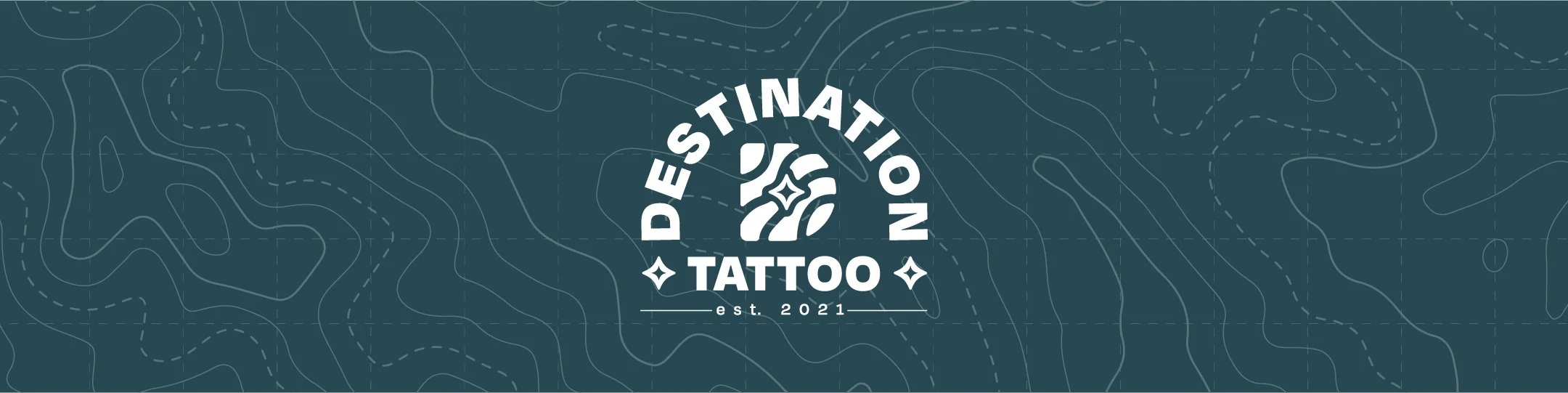 The visual identity of Destination Tattoo harmonizes with its adventurous essence. By incorporating topography elements like contour lines and maps, along with subtle travel symbols, the branding creates a compelling connection between the art of tattooing and the spirit of exploration.